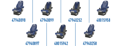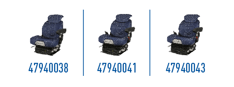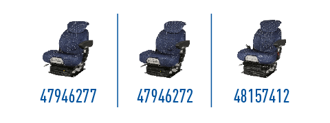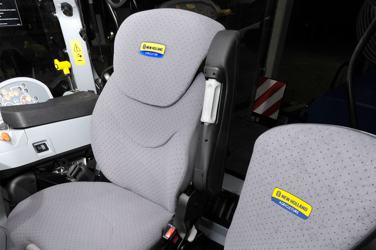 Nuovi coprisedili AIRCO con un nuovo design (coprisedili in tessuto). Nuovi colori e tessuti per il conducente e il passeggero da abbinare ai colori della cabina New Holland.